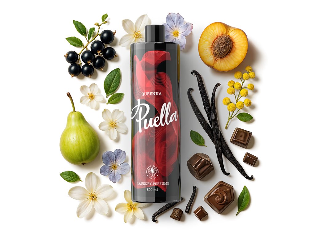 Stačí pár kvapiek a vôňa zostane vo vláknach ešte dlho po praní – svieža, elegantná a nezameniteľná. Každý parfum Puella je vytvorený z kvalitných vonných olejov, ktoré pohlcujú pachy a jemne ich nahradia tónmi čistoty a luxusu.